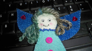 Também aqui o meu Tiago meteu o bedelho. Não, não cortou, nem coseu nem colou, mas quando viu o anjo  feito, atribuiu-lhe uma dona; Uma senhora de idade de quem ele gosta muito.