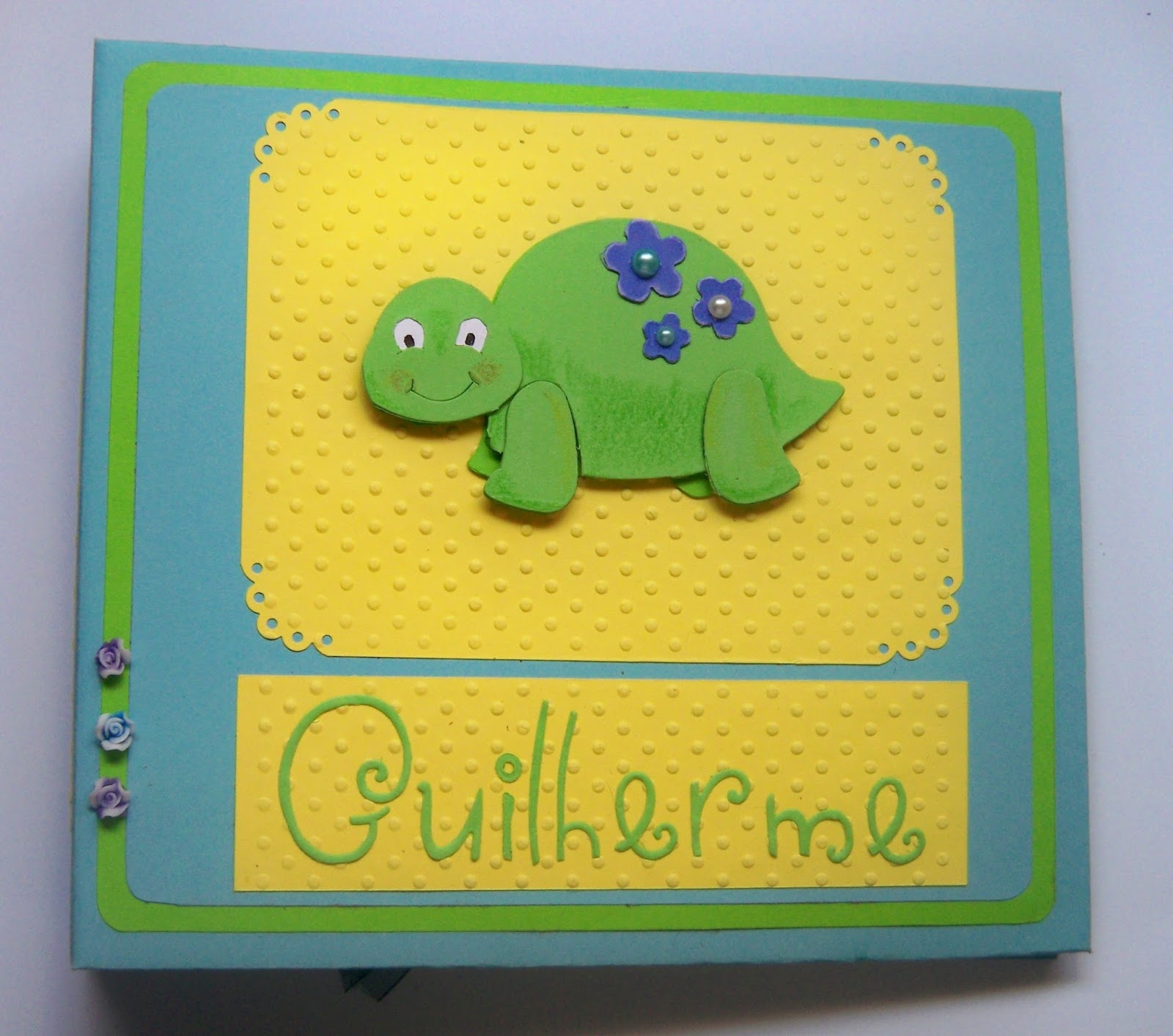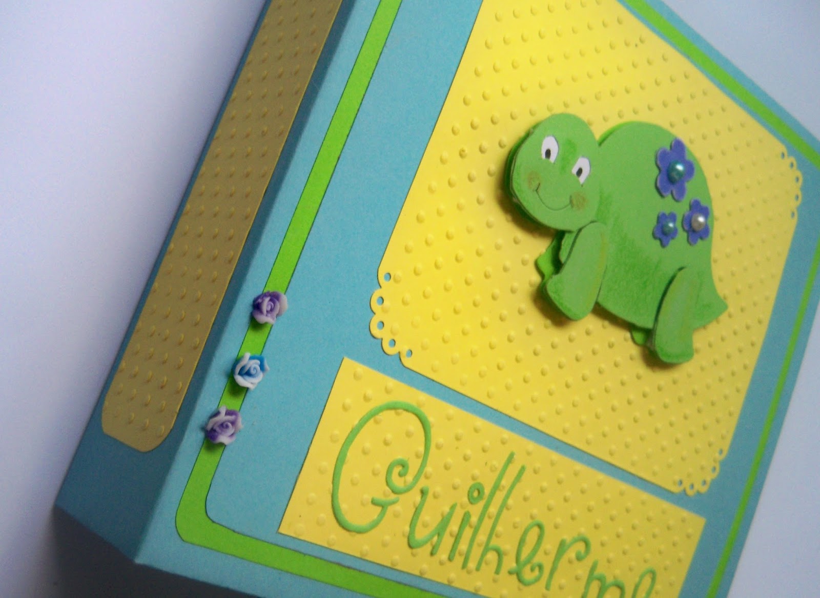 A tartaruga é da sizzix, é cortada em camadas, o meu 1º em camadas, acho que não ficou mal