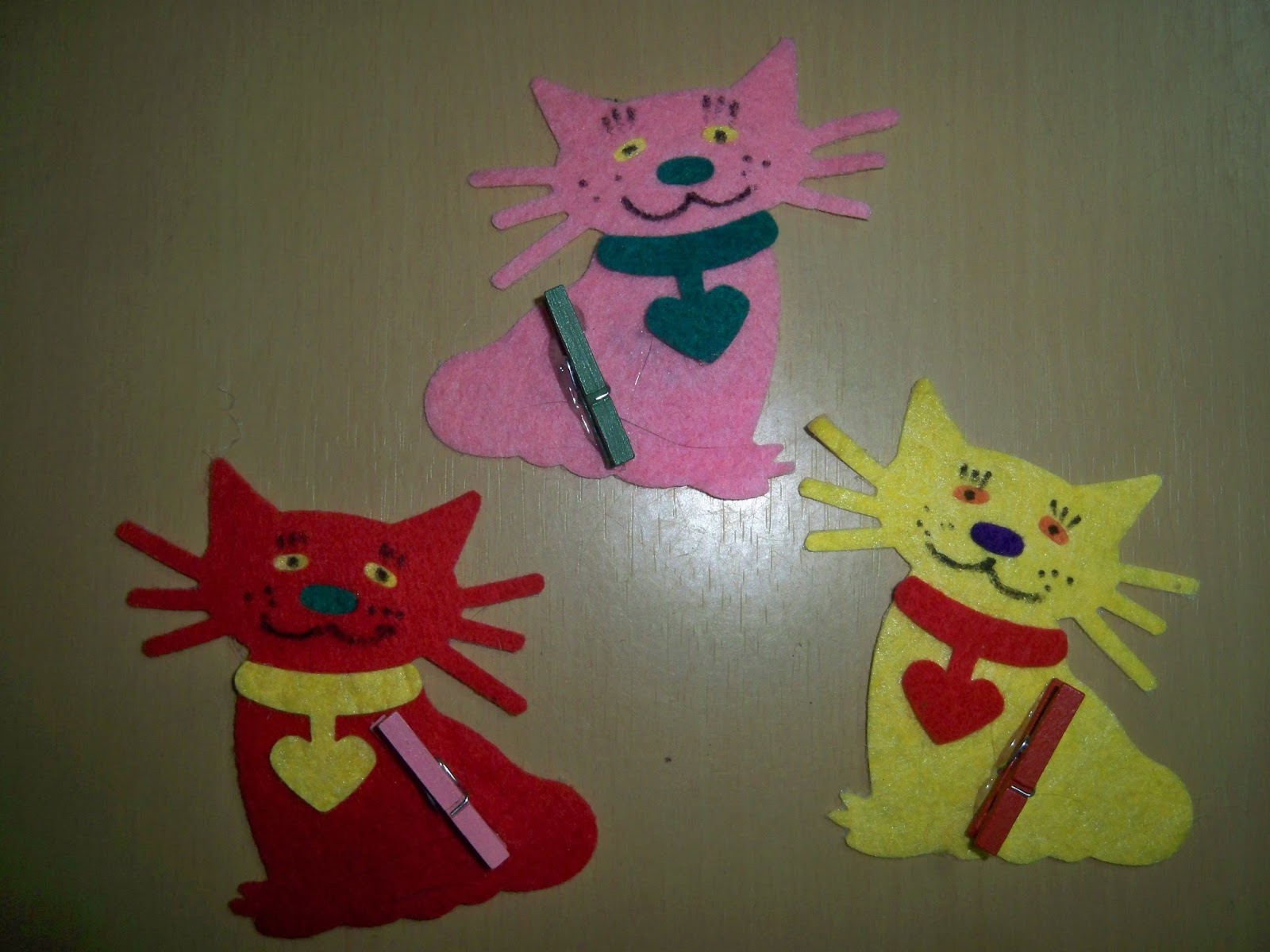 Os gatos são pequenos imans aos quais se pode prender uma foto ou recado na pequena mola