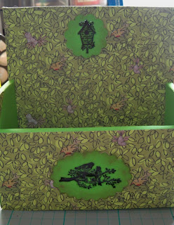 Papel decorativo, papel verde carimbos e glossy e cartão de 6mm de uma caixa, foi o que usei para o criar