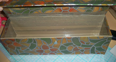 Então, peguei numa caixa de uma ventoinha, que andava a caminho do lixo, em mais um cartão grande e grosso que andava guardado para um dos meus vipes (este) fita-cola de pintor, pistola cola quente, cola branca e 2 napos e ataquei!!!