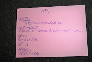 ora para a Cláudia que gosta de roxo, foi tb o ATC mais azarado, pois não encontrei fita de cetim roxa e não tinha cartolina roxa