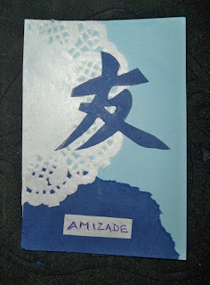 fiz para todas as meninas um atc, sob o tema AMIZADE, escolhi para tal o caracter Chinês que simboliza a amizade, como não escrevo muito mal chinês, não me julguem mal