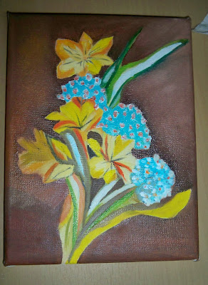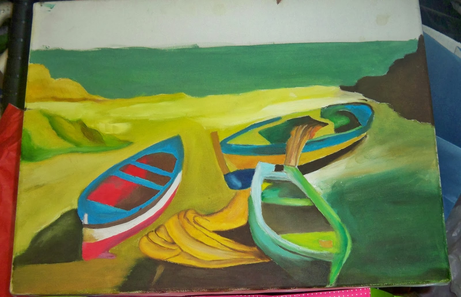 pois ela continua a pintar em casa, os quadros da aula, supostamente não pode pinta-los em casa, mas em casa ela vai fazendo telas... e este que aqui mostro já não está bem assim